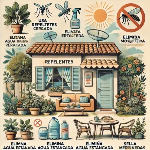 - Elimina el agua estancada en recipientes como macetas y neumáticos.
